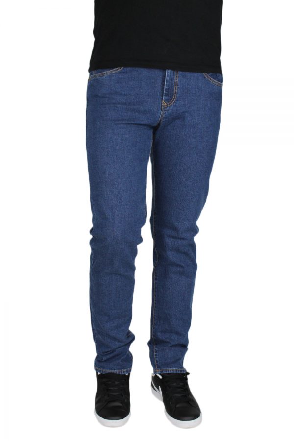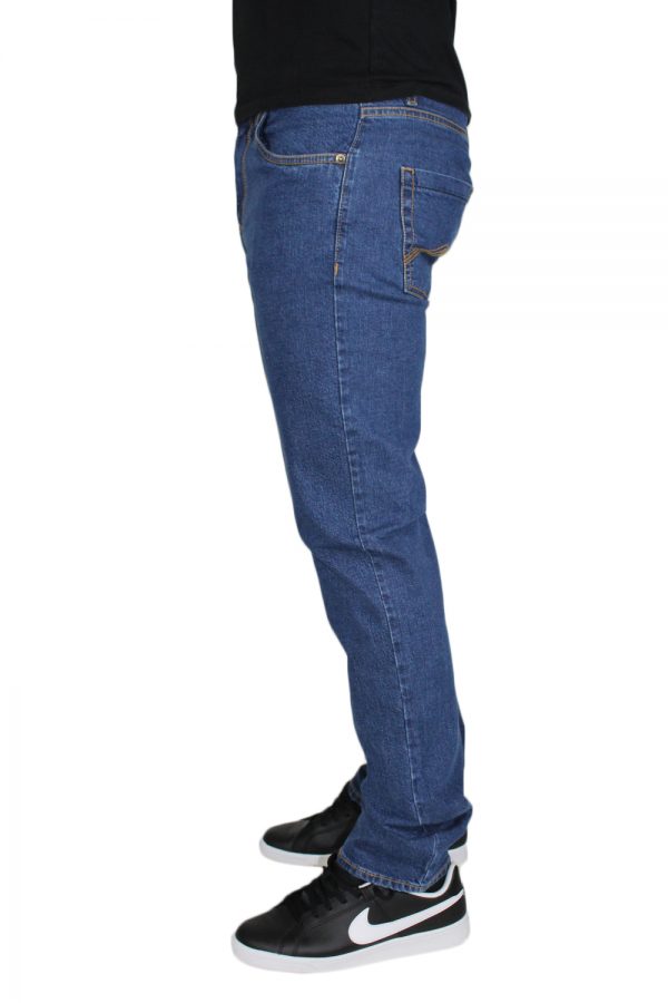 Ψηλόμεσο ελαστικό denim με ίσια εφαρμογή. Το παντελόνι κλείνει με φερμουάρ.