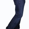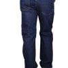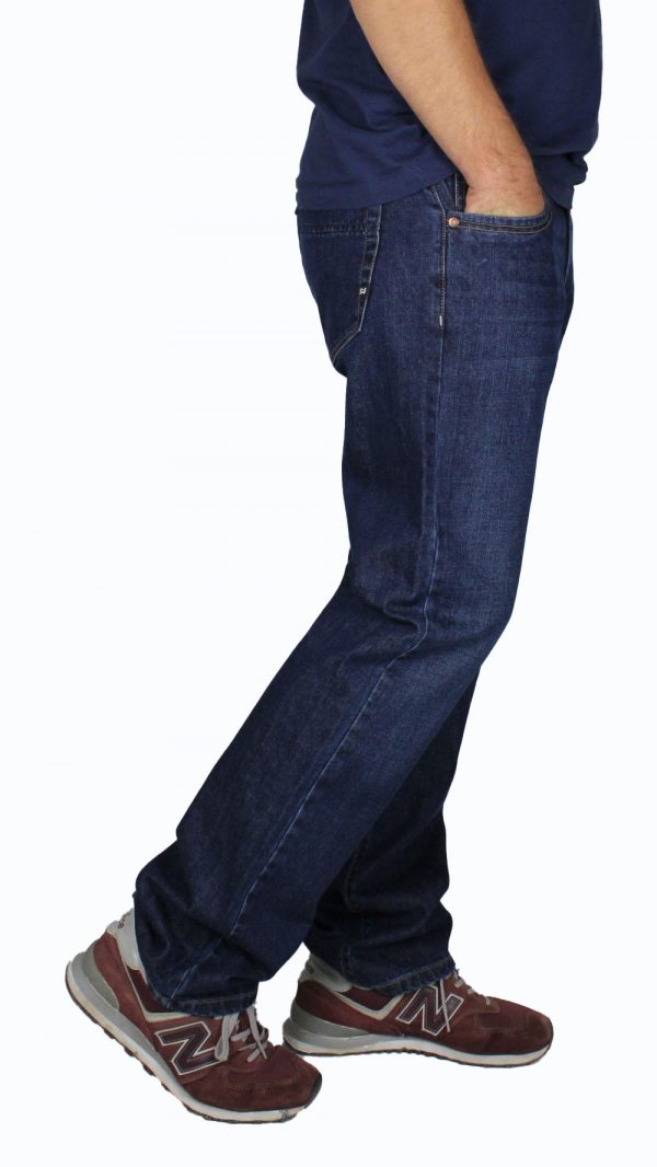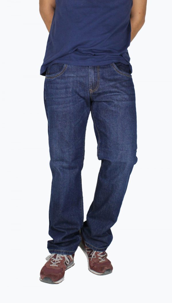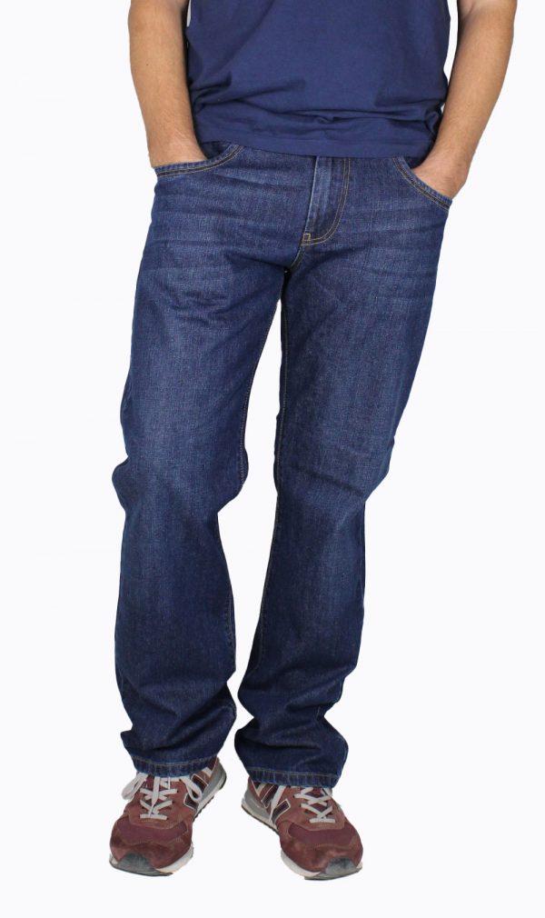 Μεσοκάβαλο σταθερό denim παντελόνι με ελαφριά επεξεργασία, κλείνει με φερμουάρ και έχει ίσια εφαρμογή.